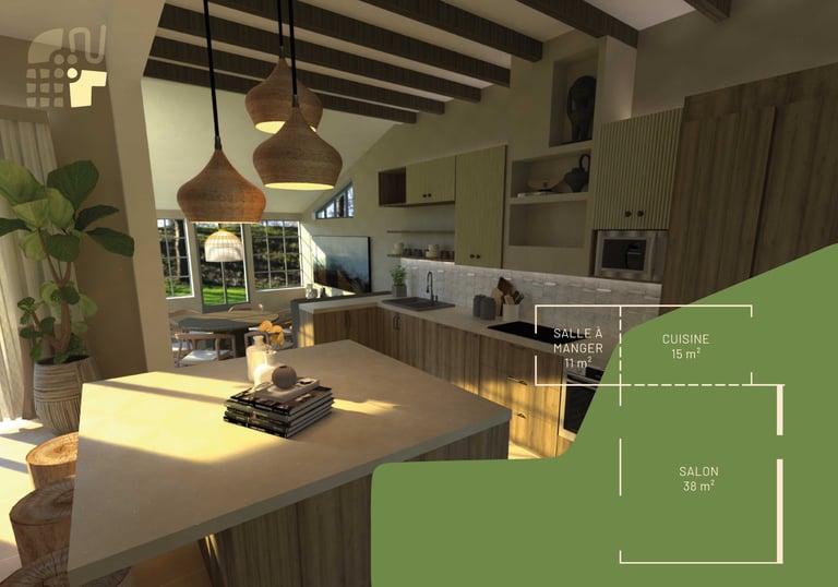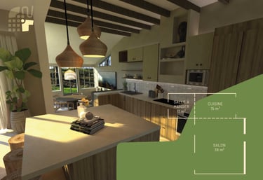 Aménagement d'une nouvelle cuisine et salle à manger dans un ancien garage.