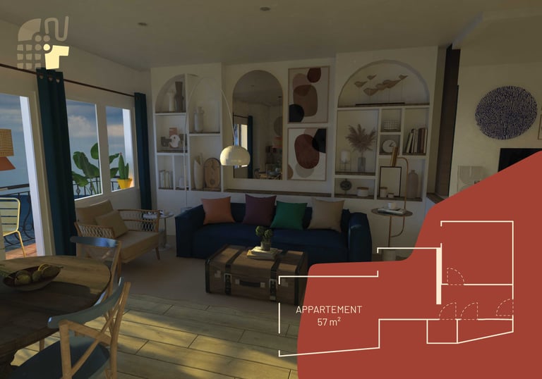 Aménagement sur-mesure d’un appartement de vacances face à la mer.