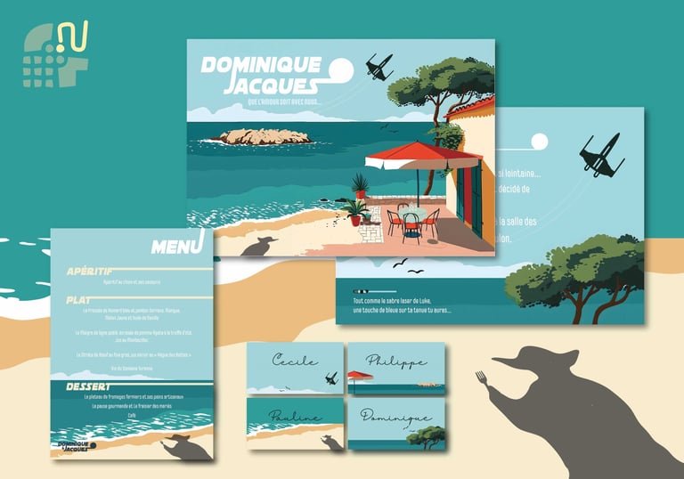 Création de l'ensemble des visuels d'un mariage sur le thème du sud et de Star Wars.